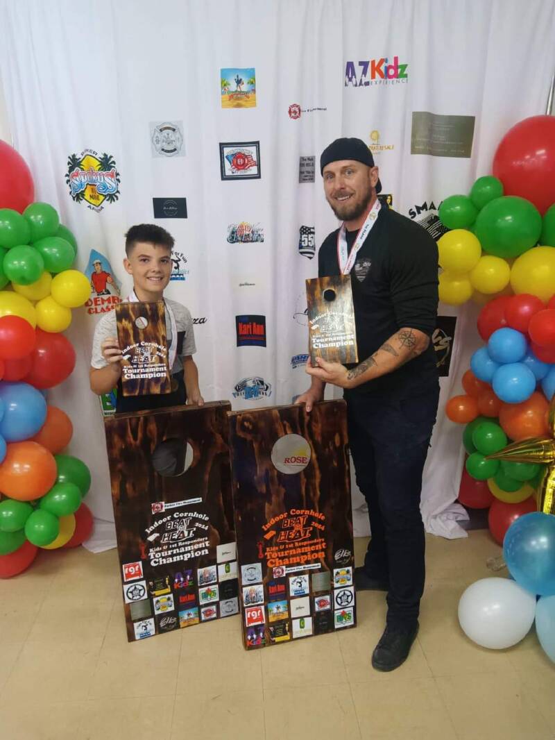 This is our most recent Cornhole tournament, We were very lucky to have a Kids & Heroes day! Our local First responders Paired up with local kids too play, What A Blast! All sponsored by local businesses!